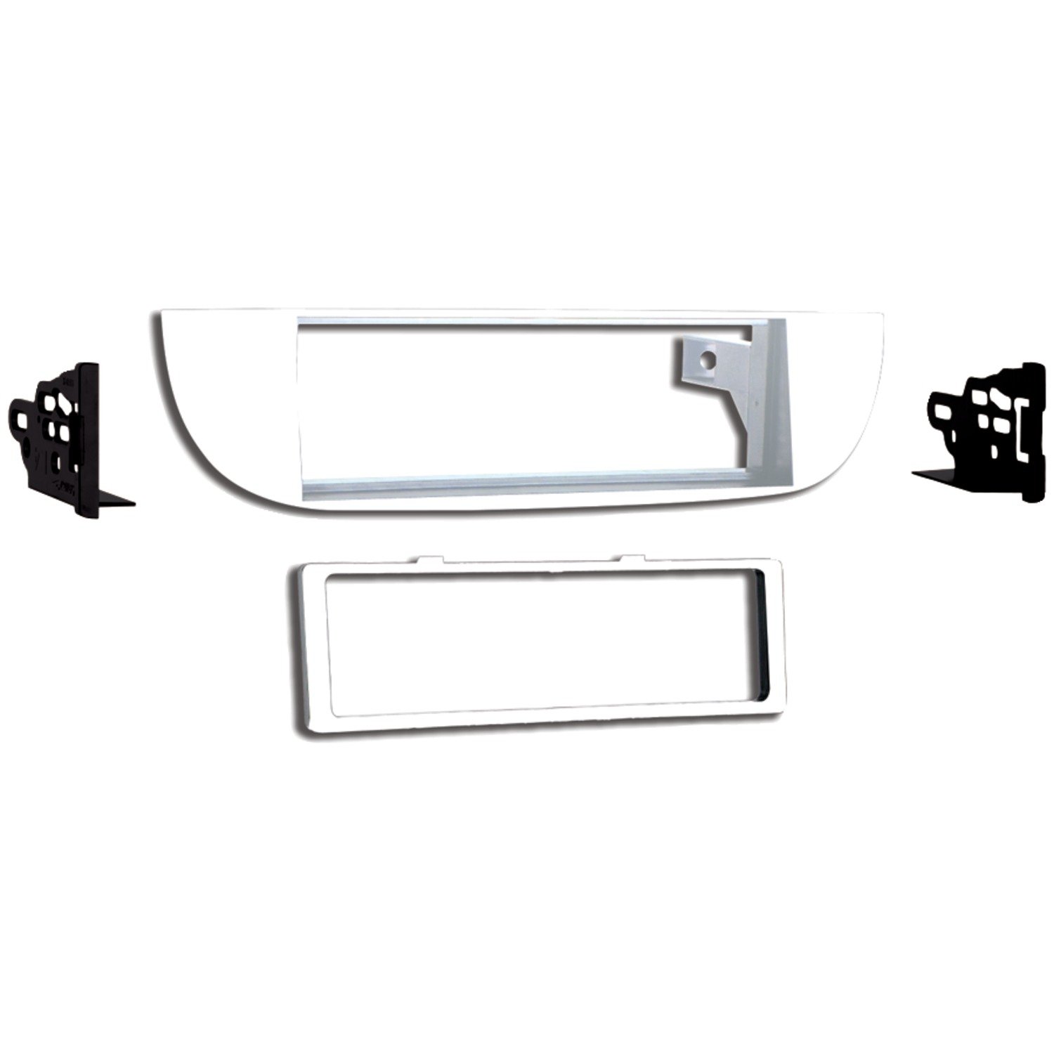 Image: Metra 99-6515W Single DIN Bianco Car Dash Kit. This image displays the primary components of the dash kit, including the radio housing and trim panel, designed for seamless integration into the Fiat 500 dashboard.