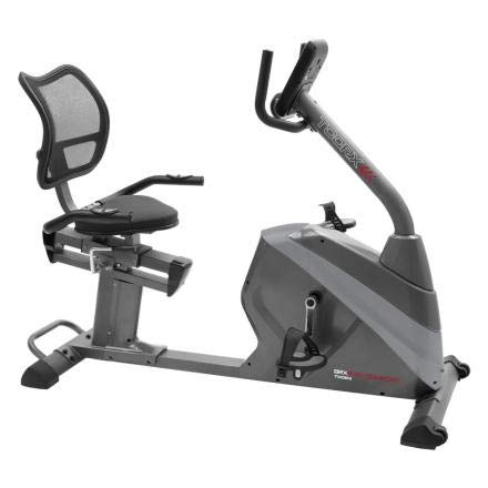The Toorx BRX R95 Comfort is designed for home fitness use, featuring a magnetic braking system, electronic resistance adjustment, and a comfortable recumbent design.