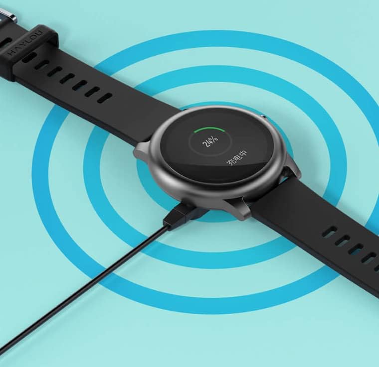 Before first use, fully charge your Haylou Solar LS05. Connect the charging cable to the charging contacts on the back of the watch and to a USB power source. The watch display will show the charging status.