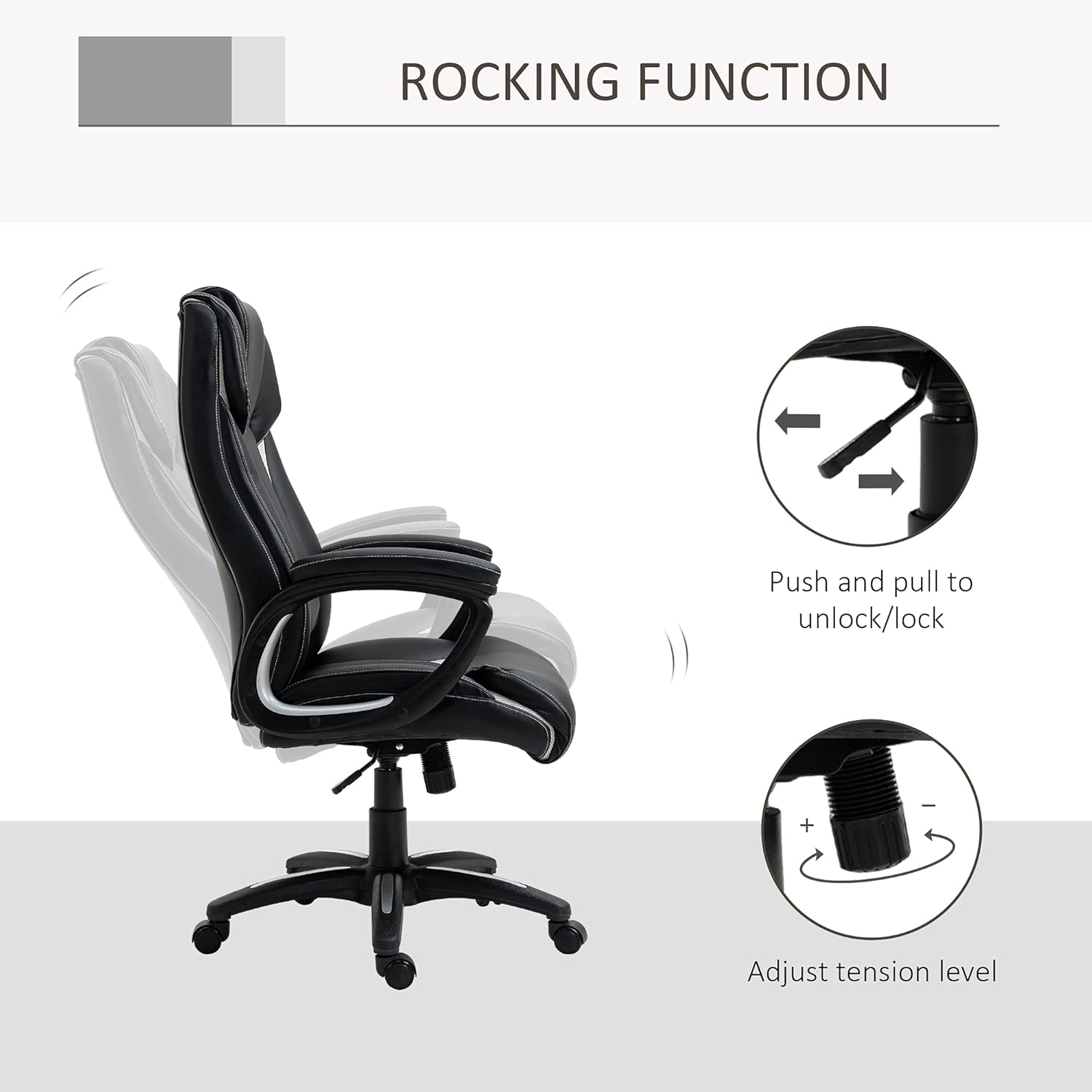 - Rocking function not working: Ensure the rocking lever is pulled out. Adjust the tension knob to a looser setting if the rocking motion feels too stiff.