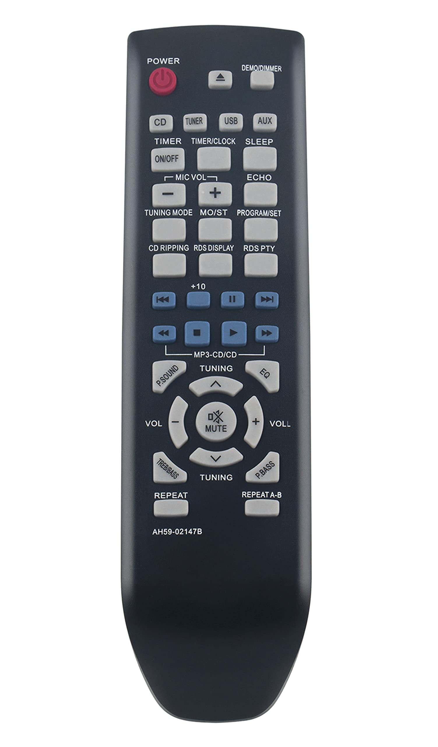 The AH59-02147B remote control is designed for immediate use with compatible Samsung Component Audio systems without any complex setup or programming. Simply install the batteries, and the remote is ready to operate.
