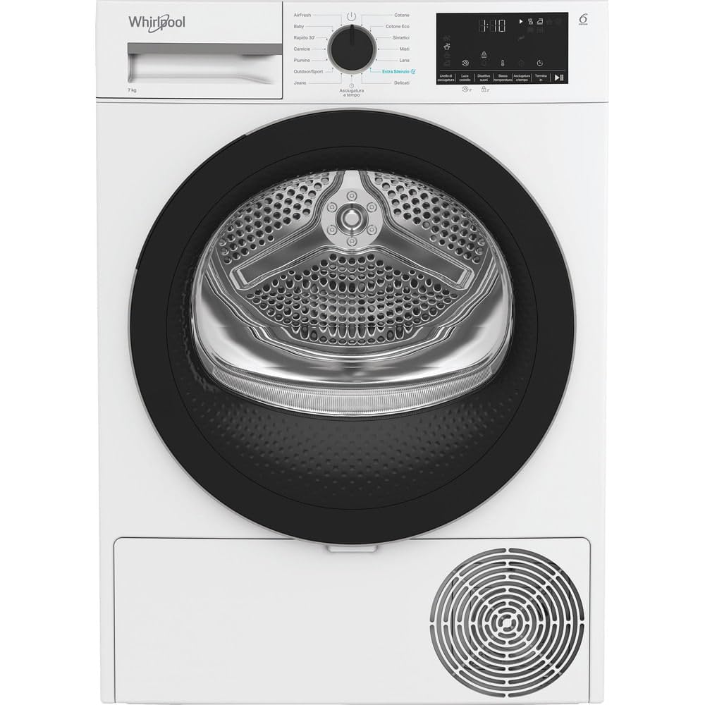 This manual provides comprehensive instructions for the safe and efficient use of your Whirlpool C WD R47M WBS IT 7kg Heat Pump Tumble Dryer. Please read all instructions carefully before installation and use, and keep this manual for future reference. This appliance features a spacious 7kg drum capacity, 6th SENSE technology for optimal drying, and a heat pump system for energy efficiency.